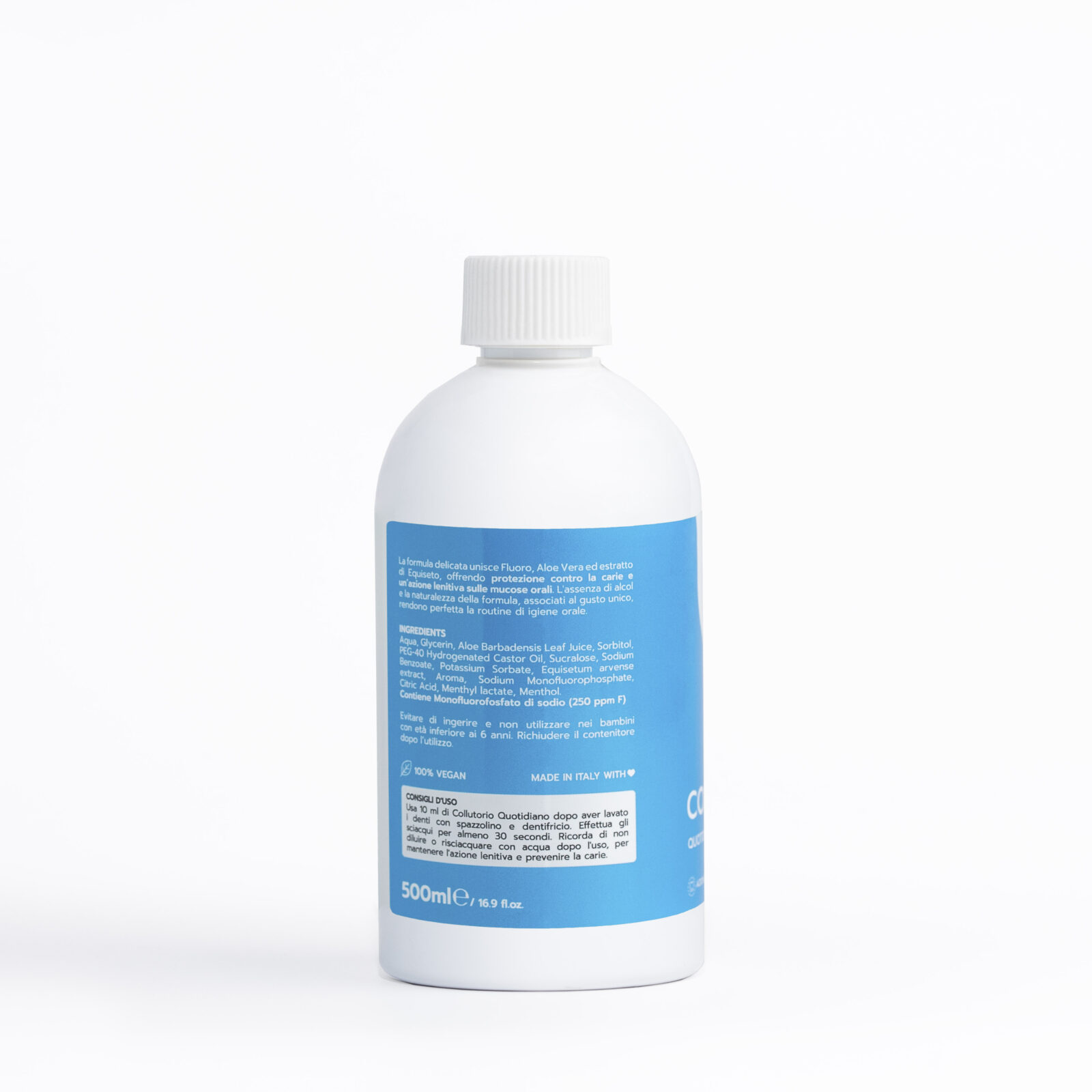 Collutorio ad uso quotidiano aromatizzato, con Fluoro, Aloe Vera e estratti di Equiseto.